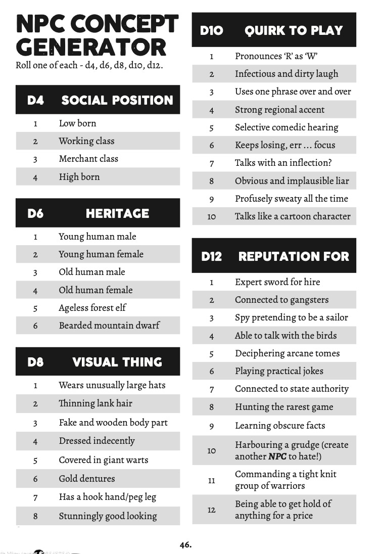 One of the many things the ttrpg hobby is opinionated about is layout and graphic design. I am not expert in design, but I too have opinions! When I consider an rpg product, I am really interested in the effective communication of its ideas and rules and its usability at the table. There are many products that are just so efficient at delivering core ideas, a testament to both succinct and clear writing and thoughtful layout and design. Other (often mainstream) products look like they just copied and pasted the text and called it a day. A third, perplexing category are products that receive plaudits for their design and layout but which I find unintuitive and difficult to use. Some examples of each of these categories.